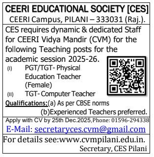 Ceeri Vidya Mandir, Pilani is truly an exceptional school that emphasizes on the overall development of its students. As a former student who spent 13 years there, I can attest to the top-notch education, excellent sports facilities and the wide range of extracurricular activities offered. The school has always focused on creating a learning environment that nurtures students' talents, helps them grow as individuals and prepares them for their future endeavors. From regular classroom teaching to sports training, cultural events, and community service, Ceeri Vidya Mandir provided us with numerous opportunities to explore our interests and passions. I am grateful for the school's commitment to providing a well-rounded education that has prepared me well for life beyond the classroom.