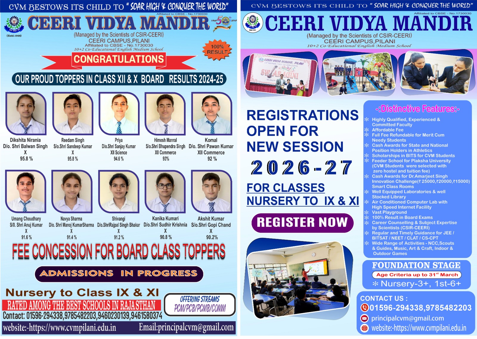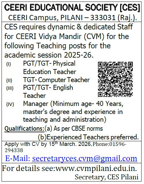 "CEERI VIDYA MANDIR aims to be an institution of excellence where sound ethical values, character, wisdom, leadership, service and academic achievements are encouraged in a safe and nurturing environment."